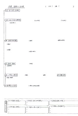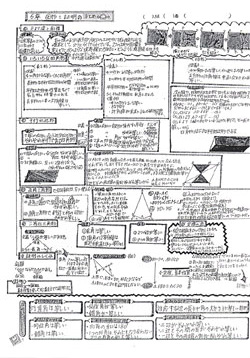 宿題として,相似な三角形をかかせその辺や角度を調べることで「相似な図形の性質」について考えさせ,次時につなげる。 |
