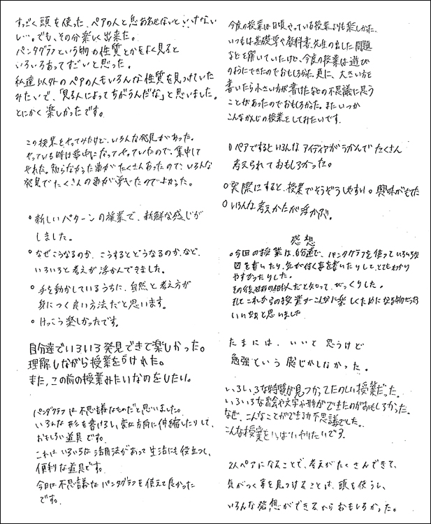 パンタグラフを使って相似な図がかけたか?そこに(数学的な)何かを発見することができたか? |