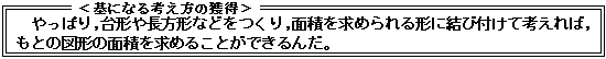 この問題で,活用した考え方を「やっぱり,〜すればできる」という形で表してみよう。また,授業を振り返って,感想を書いてみよう。 |
