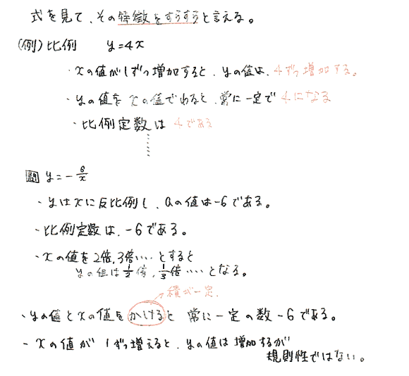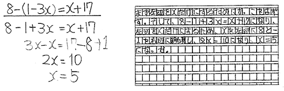 1. はじめに 私は, 数学教育で最も重要なねらいは,事象を数理的に考察する能力,例えば,現実の世界を数学的に表現し,数学的に処理することで問題を解決できるようになる能力を育成することと考える。しかし,このような能力は,基礎的・基本的な内容が習得できなければ,十分に育成できないものである。 基礎的・基本的な内容の習得を目指す指導については,これまでも多くの研究実践が行われてきた。とはいうものの,一人ひとりの生徒の学習状況は異なるのが常だから,基礎的・基本的な内容を習得させる授業作りは,私たち数学科教師の永遠の課題ともいえる。学力低下が懸念され,世間一般からも数学教育への関心が高まる昨今,「基礎・基本」をテーマにして,本稿に臨むことにする。 2. 「基礎・基本」と言葉 「基礎・基本」を大きくとらえると,概念や原理・法則の理解と,数学的に表現・処理する技能の2つの面がある。これらは,人類の長い歴史の中で,体系的に整えられ整備されてきた財産である。従来,このような内容を扱う授業は,教師主導型の指導,いわゆる「教え込み」形式の指導が主であった。 しかし,そのような授業で学んだ内容は,単なる知識や技能にとどまってしまい,数理的に考察する場面に活用されたとは言い難いものであった。このような反省から,最近では,「数学的な活動」などを取り入れ,生徒が主体的に学習することで進められるようになった。 ところが,数学における「基礎・基本」は,体系的に整備された内容であるだけに,生徒が主となって学習を進めるにしても限界がある。どのように生徒が創造的な活動をしても,最後は,先人が築いてきた文化に帰着させなければならない。生徒の活動を取り入れた授業研究が進めば進むほど,私たち数学科教師は,このような課題と向き合うことが求められることになる。 数学用語,これこそ,先人によって体系的に整備された象徴といえよう。そこで私は,「基礎・基本」をテーマにするにあたり,数学用語をふくめ,広い意味で,授業で用いる「言葉」を重視することを心がけることにした。 3. 「基礎・基本」と教科書 生徒も含め私たちが,体系的に整備された数学に容易に触れることができるのが教科書である。見方によれば,「基礎・基本」を習得させる指導とは,教科書に記述された内容を,生徒に正しく伝達する指導ともいえよう。要は,生徒が教科書に記述された内容を理解すればよいのだが,実際はそれほど単純なものでない。 教科書は,紙面というスペースに,言葉を用いて,体系化された数学が記述されている。しかし,紙面に記述される内容には限りがあり,また,用いられる言葉も広く一般的なものでなければならない。このように教科書には一定の限界がある。このような限界が,生徒にとって教科書の内容を理解する上で大きな障害になっていると私は考えた。 そこで私は,教科書に記述されている用語や言葉,さらには,行間に隠されている文言などを重視し授業をすすめることとした。 4. 指導の実際