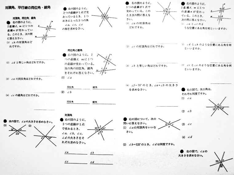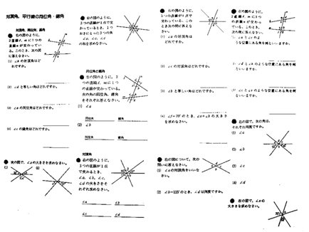 1.生徒の実態 本校の生徒は,楽しいことにはよく反応し,質問にも積極的に答えていく雰囲気がある。しかし,数学に関しては,入学時点ですでに大きな差があり,授業が進むにつれて意欲をなくしてしまいがちである。家庭学習をほとんどしない生徒も多く,学習内容がなかなか定着しない。2.図形の定理別プリント 図形において《定理別プリント》なるものを定理ごとに2,3枚ずつのプリントを作成したところ,「初めてプリント1枚を仕上げることができた」という声があがるなど意欲的に学習に取り組めた。《定理別プリント》は,同じ定理を繰り返し使うので定着させるのに最適である。 《定理別プリント》とは,