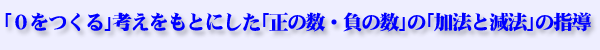 を学習し,括弧のついているものについては,すべて括弧のないかたちで考える。「加法」,「減法」については,「項」の考え方になった段階でその区別がなくなる。 この括弧のはずし方は,基本となることなので必ず習得することが必要であるが,乗法の符号の考え方と同じであると意識させることもできる。 (4)異符号で絶対値の同じもので0をつくる まず最初に, 3−3