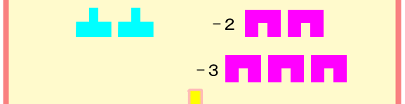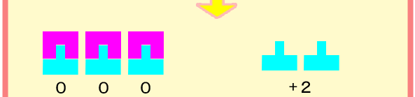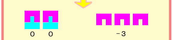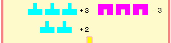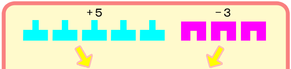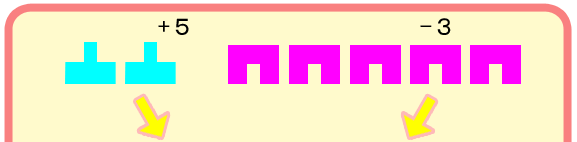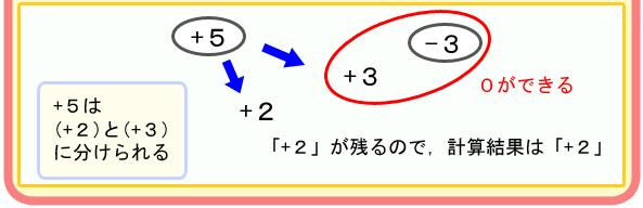 ![]() (5)異符号の計算で0をつくる 次に一般的な計算であるが,最初に考えるのは,異符号の2つの項の計算を考える。 +5−3