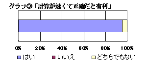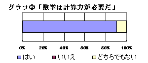 また,大半の生徒の文章に「100マス計算」のことについて肯定的に書いてあり,「できた」「よかった」「分かった」などの言葉から,生徒達に自信が生まれてきているようだ。 「100マス計算」を毎時間同じ条件で行い結果を記録していくことで,「正答数の増加=計算力アップ」を生徒各自が瞬時に読み取り,自分の進歩が目に見えて確かな手応えとして感じることができる。シンプルで非常に分かりやすい仕組み・仕掛けであるが,その効果は非常に大きい。数学に対して「苦手」意識を持っている生徒の気持ちをほぐし,「苦手な中でもこれだけは・・・」いう最後の砦・気持ちの支えになっていくと思う。 ところで,この「100マス計算」は,計算力アップ以外のメリットも生じた。それは,「100マス計算」を授業開始と同時に行うため,生徒の気持ちが短時間で授業モードに切り替わるのである。つまり,チャイムと同時に学習体勢になり,教室に緊張感が生まれるのである。また,計算問題でウォーミングアップできているので,授業の後半,生徒の集中力が持続したまま1・2年の内容に移ることができる。毎時間,問題を作成することは大変である。しかし,数多くの問題作成ソフトがフリーソフトとしてインターネット上にある。私は,その中で「とことん100マス夫さん」を利用し,時間短縮を図っている。 5.今後の課題