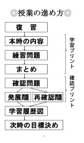 授業の流れを復習→本時の内容→練習問題→まとめ→確認問題→