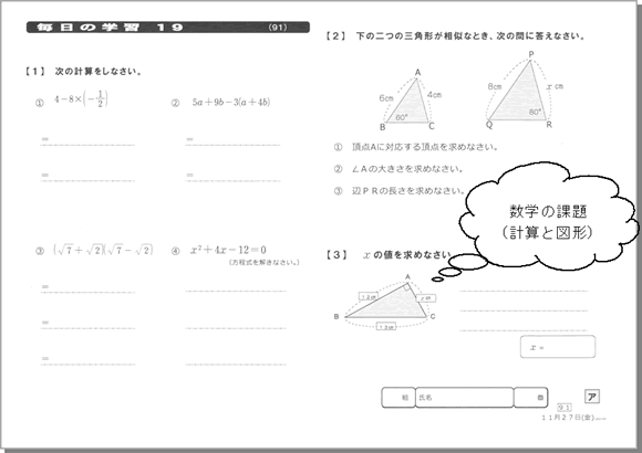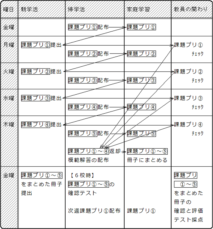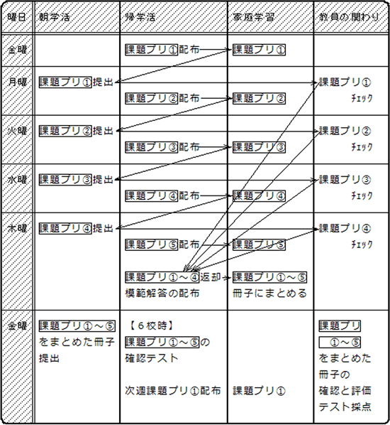 そこで,その対策として家庭学習の課題を出し,基礎学力の定着化を高めることを目指した。