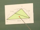 この3つの三角形のうち,相似の関係にある三角形があります。どれでしょうか。 |