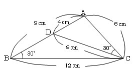 相似条件を使った問題を考えてみましょう。これはどんな相似条件が使えますか。また,その理由を説明してください。 |