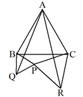正三角形ABCの外側に点Pをとり,BP,CPをそれぞれ1辺とする正三角形QBP,RPCを,△PBCの外側につくります。
