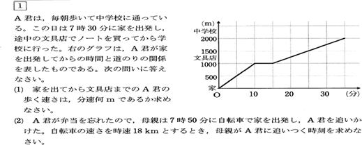 S2:妹は,20分で3km進む 傾きは ,(20,0)を通るから に(20,0)を代入しbを求めると−3になるから