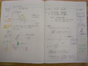 ガイダンスのときにノートの作り方について指導した。このノートのとりかたはコーネル大学方式を参考にしたものである。以下に生徒のノートを紹介する。