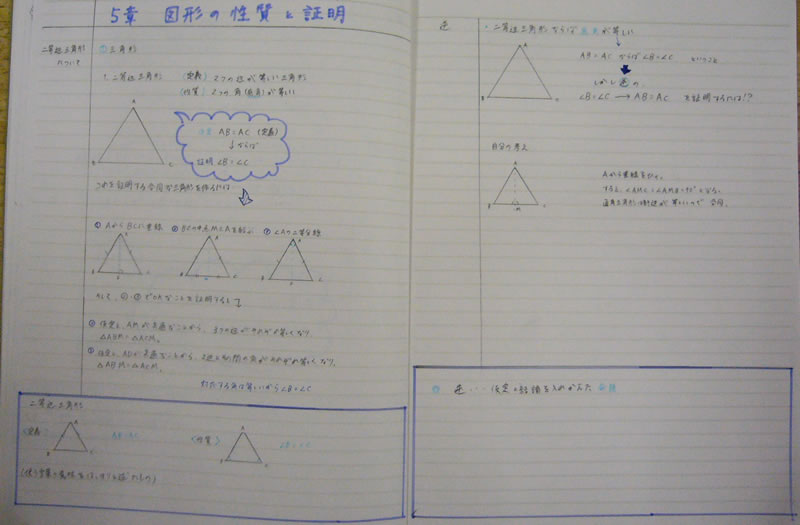 (4)ICTコンテンツと工夫あるノート指導を通して授業を行うことによって,生徒が数学に興味を持ち,ノートを有効に利用することにより主体的に物事を考え,解決する態度を養える。