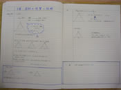 上記のようなノートを作成させ,ノートを参考に課題を解決する手だてを考えさせるように指導助言を与えていった。それにより,自身のノートをもとに試行錯誤し問題に取り組む生徒が多くなってきた。