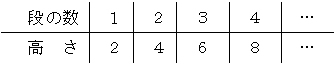 □表や図をもとにして式をつくり,段の数が変わっても成り立つことを説明することができる。