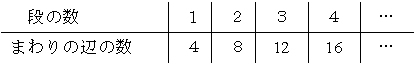 □段の数が変わると伴って変わる数量を,意欲的に見いだそうとする。 |