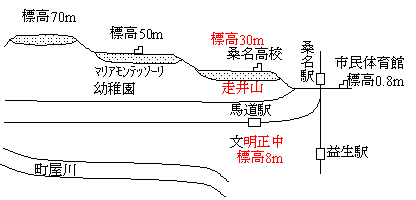 これによって,桑名には鈴鹿山脈の方から,砂やれきが運ばれるようになる。その後,氷河期や土地の隆起により桑名には3段の段丘が形成されることとなった。