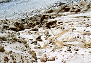 この時,特に削られる地面の硬さや体積する場所,体積する様子などを観察させたい。写真をもとに説明し,各自が関心を寄せて観察対象を見つけさせたい。 |