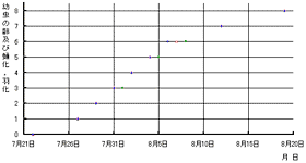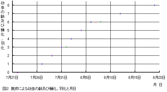 | 7) | 幼虫の脱皮,蛹化や蛹からの羽化などをカメラで撮影する。 |