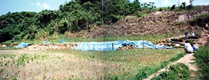 地震により大きな被害を出した「兵庫県南部地震(阪神・淡路大震災)」は,発生から早7年を経過したが,その時の恐怖と驚きの体験は今だ記憶に新しい。 最大の変位を示した平林地区の野島断層 | 大阪南部に住んでいる筆者の近辺でも屋根瓦がずり落ちたり壁に亀裂が入り,食器が散乱して割れるなどの被害があった。ところが昨年度本校(岸和田市)で1年生を対象に地震の授業をしたときは,生徒が小学1年生のときの体験であり,大震災の記憶が薄れかけてきていた。当時のビデオ映像や地震関係の書籍を見せたり,わたし自身が撮った写真を見せて,体験を思い起こさせるようにした。その中で,最大変位の平林地区の断層地形モデルを使った授業を行ったので紹介する。