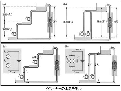 イメージ化を図るための教材として,手軽に用意できるという点で,シミュレーションではなくモデルを使うことにした。そのモデルは教科書に掲載されているゲントナーの水流モデルを改良したものである。