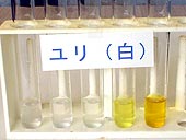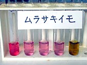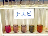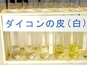 取り出した色水が酸・アルカリによって色変化を示すかどうか,また,示すときはどのように色変化するかを調べる。