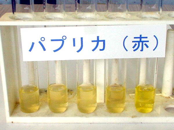 アントシアン系は,オレンジ色,ピンク色,赤色,紫色,青色などの色を示す色素で,酸・アルカリによって赤色→紫色→青色→緑色→黄色とカラフルな色変化を示す。フラボン系は,主に黄色を示す色素で,酸では変化しないが強アルカリによって黄色などの色が濃くなる。カロチノイド系は,赤色,オレンジ色,黄色を示す色素で,酸・アルカリによって色は変化しない。