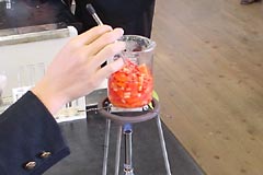 この実験では,取り出した色水の美しさ,色変化の不思議さを感動を持ってとらえさせたい。その感動が,子どもたちのさらなる探究心につながっていくものと考える。 3.授業の実際 実験は,3〜4人のグループで自分たちが持参した野菜など(2〜3種類)を使って行った。(配当時間:4時間〈2コマ扱い〉)