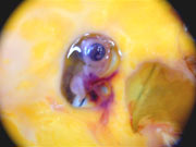 1.はじめに 平成14年度に選択理科と科学サークルで,ニワトリの有性卵をふ化させることに取り組むとともに,生き物の命について,生命尊重の立場から考えてみた。 2.胚発生の観察 38℃に保ったふ卵器に入れた有性卵(受精卵)を用いて,ふ卵5日目から10日目までの胚を順次観察した。