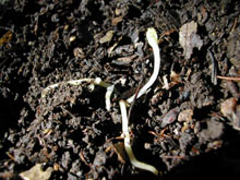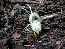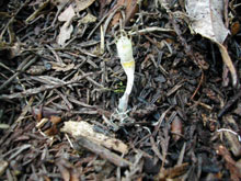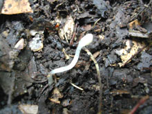 | 1) | 生えてすぐのものは,ちょっともやしに似ている。 落ち葉の下で光にも当たらず生活しているので,しかたないことだろう。 |