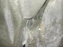日本で最初に見つかった場所は,鍾乳洞の近くであることがわかった。木沢の自生地にも,鍾乳洞とまではいかないが,写真のような石灰岩の大きな穴があった。静岡の自生地の近くにも鍾乳洞があるらしいので,タヌキノショクダイは,石灰岩地帯だけに生える植物ではないかという予想が最初に出た。 |