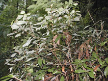 自生地は,今はスギ林だが,その中のあちこちにカシの木が見られる。スギを植林する前この場所は,カシの林であったことが予想される。それが,スギ林になって環境が変わったのが減少してきた理由かもしれない。 |