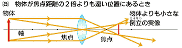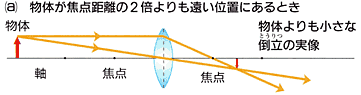 これらの指導では,さまざまな実験を行うことにより諸現象を生徒自らの目で確認することが重要である。また,確認した諸現象をまとめるためには,光が進行するようすをわかりやすく図で表現することも必要となる。 実際の指導で光による像のでき方を扱うときには,図1のように,特定の1点から進む光の道筋を示して説明することが多い。しかし,この図は一見分かりやすく像のでき方を示しているように見えるが,生徒に十分な説明を与える図とはいいにくい点がある。 ![]() 図1は,矢印の先端から進行する光についてのみ説明しているだけで,矢印の中間や起点から進行する光についての説明は示されていない。これは,暗黙の了承のうちに,矢印の各部分から進行する光が,レンズから等しい距離にある場所で像をつくることを前提にしているからである。 ![]() 図1 光によってつくられる像は,1点からの光だけでは成立しない。このことは,実際の現象を考える上で重要なことではないだろうか。しかし,ほとんどの生徒は,このことを意識しないままに光の進み方についての学習を終えている。 そこで,この研究では,光によってつくられる像についての指導を,今までとは異なる視点に立って実践してみた。 2.研究のねらい