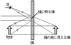 ![]() 図6 5.指導による効果と課題 理科という教科の指導において,実験は重要な役割を果たしている。例えば,特定の条件における事象の確認や再現を行うことによって観察・実験の技能を高めたり,結果を考察することによって科学的な思考を発展させたりできる。また,印象的な事象を再現することによって感動を呼び起こし,自然現象に対して関心・興味を育てることもできる。そして,結果を蓄積することによって知識や理解の度合いを高めることもできる。 しかし,単に実験を行うだけで,その内容を整理したりより深く考察することを怠ると,せっかくの努力が活かされることなく,ただ単におもしろおかしい経験をしただけに終わってしまうことがある。 中学生は,精神的にまだまだ未熟なところが多く,実験という行為には関心を持つが,その内容については興味を示さないことがよくある。そのような実態にあって実験を活かすためには,実験によって生まれた体験的感動を上回る知的感動を生徒に経験させることが必要ではないかと思う。 ここに紹介した,光がつくり出す物体の像についての実践は,この知的感動を生徒に与える教材として有効であると考えられる。なぜならば,鏡に映る像を見るという行為は日常からごく当たり前に行われている行為であって,実験によって得ることのできる感動は他の実験に比べて少ないことが予想されるからである。単に鏡に映る像を眺めているだけではなく,そこに隠されている未知の事象に気付かせることにより,当たり前の現象が不思議な現象に生まれ変わり,知的感動をかき立てる現象に変化するのである。 ただし,生徒の知的感動をかき立てるには指導の仕方に多少の工夫が必要である。理屈一点張りでは堅苦しいだけの授業になり,教師の感動を押しつけるだけでは生徒が嫌気をさしてしまう。生徒が素朴な気持ちで不思議だと感じられるような授業展開が必要不可欠となる。 また,作図をするときには定規を用いてできるだけ正確に描くことが大切である。入射角と反射角が等しいことも再確認しておいたほうが無難である。そうでなければ鏡面上にできる像の大きさをきちんと把握することができなくなり,単なる作図方法の練習に終わってしまうことがある。指導の第1番目に入射角と反射角の記入をさせているのはそのためである。生徒には,この教材は少し理屈っぽく感じられるかも知れないが,さほど難しくない作業をするだけで内容を理解できるので是非一度実践していただきたい。 6.おわりに 理科の指導内容には,実験だけでは生徒の関心・興味を引き出しにくいものがいくらかある。ここで紹介した光の進み方と像のでき方についての指導もその一つである。2つの物体間にはたらく力についての指導などもその例にあたるだろう。他にも,電気に関する内容や化学反応式の作り方など,概して目に見えないものや図に表しにくいものがそれらに当てはまるように思える。 しかし,そのような指導が困難な内容についても,その困難さを逆手にとって,如何にして生徒の知的感動をかき立てる教材を開発するか,如何にして知的好奇心を高めるかということが,教師にとっての喜びであり醍醐味であると筆者は考える。 大げさなようだが,教師が発見して感動した内容は,生徒にとってもきっと感動するものだと思う。ただ,その感動をどのような方法でうまく生徒に伝えるかが問題となる。当たり前のことを見逃さず,素朴な疑問を追求する。そんな中で,教師としての力量を磨くことができれば幸いである。 〈図の引用〉