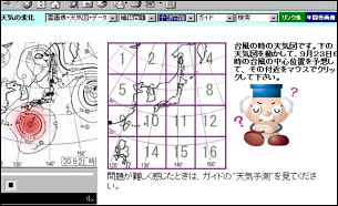 ガイドは,日本の気象に関係の深い地域を示した地図,天気の予想をするときのアドバイスを表示する。