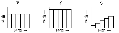 | Q2: | ア〜ウで,同じ速さで物体が移動したのはどれか。 |