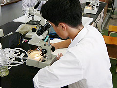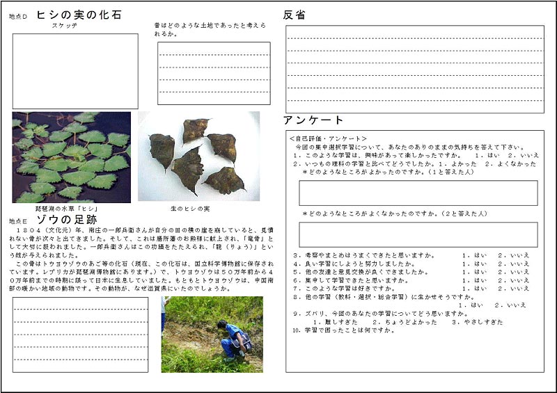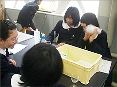 琵琶湖のプランクトンの調査では,自分で採取した水を自分の手で調査することによって,自然環境の保全についてより深く考えることができたようである。3年生でプランクトンの観察とは少々もの足りないのではないかと心配していたが,これまで学習してきたことをふりかえり,活用する場としてとてもいい機会であったように思う。生徒のアンケート調査では,「大変満足している」とあり,感想には「琵琶湖の現状を肌で感じた」というものがたくさんあった。