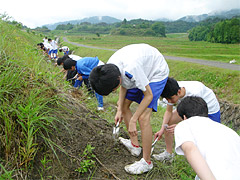 2つの選択学習を通して良かったことは,グループごとに違う課題研究テーマに取り組ませ,野外調査のしかる場面でリーダー的な役割を持たせたことである。現地で,他のグループの生徒にうれしそうにアドバイスしている姿は見ていて気持ちの良いものである。
