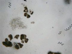 生徒は,ひしめき合うような,プランクトンのあまりの量の多さにとても驚いていた。事前学習のビデオで見た琵琶湖のアオコのプランクトンが多数見られることに驚いていた。アオコの正体であるミクロキスティスやアナベナはこの時期より大量発生するので,秋にはもっと増えるはずである。湖水中のリン酸イオン濃度やCODなどを低濃度用パックテストでグループで調査した。その結果,家庭排水ほど汚くはなく,まだ琵琶湖はきれいだと気づいていた。