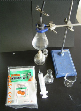 1.はじめに 教科書の気体の単元の中に,アンモニアが水に溶けやすいことを調べる実験として,むかしから丸底フラスコを用いたアンモニアの噴水実験が紹介されているが,多くの先生方は,実際に生徒に実験させたり,演示実験として行ったりすることも,あまりないのではないだろうか。 その理由として,使用するフラスコを乾燥させるのに手間がかかることと,フラスコにふたをするゴム栓に通して使うスポイトと先を細くした噴水用のガラス管の加工が面倒であることが考えられる。クラス数が多い場合は,1クラス分の班の数だけ装置を作っておいても,授業が連続しているときは,次のクラスの実験までにフラスコを乾燥させることは困難になる。その対策としては,装置を2クラス分製作すればよいのだが,その手間を考えると,ついビデオを見せるか口頭での説明で済ませておこうと考えてしまう。(本当は,教師の仕事として,その程度の実験器具の製作は当然なのだが・・・) そこで,もう少し簡単にこの実験を行えないだろうかと考案したものが,以下に示す実験である。 2.この実験で生徒に気づかせたいこと