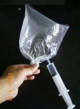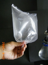 3.実験方法のポイントと利点 丸底フラスコは,一度実験に使用すると水滴がつき,洗浄・乾燥に手間がかかるので,無色透明のポリ袋を使用する。この利点は,ポリ袋のしぼむ様子から,アンモニアが非常に水に溶けやすいことを視覚的に確認できる。そのうえ,ポリ袋は実験後捨てることができ,実験の度に新しいものが使えるので,洗浄・乾燥する手間も省ける。 噴水の部分には,プラスチックの注射器を使う。この利点は,注射器のみでの洗浄ができ,先端部分の乾燥も容易である。 装置が簡単で軽量なため,演示実験も,装置を手に持ち,机間をまわりながら生徒の目の前で行うことができ,ポリ袋のしぼみ具合やフェノールフタレインの色の変化を確認させることができる。 4.実験の実際