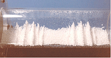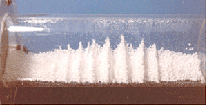 音がだんだん高くなっていくことに気づき,特定の音の高さで,管の中の粒子が規則的に並ぶ様子を観察する。 |