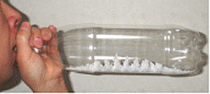 アクリル管のかわりにペットボトルを利用することもできる。こちらは,簡単に手にはいるので,多くの生徒にチャレンジさせてみるとおもしろい。 |