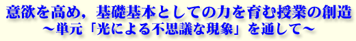 1.はじめに 理科嫌いが進んでいるとか,科学的な思考ができない生徒が多いとか言われている。また,基礎学力向上のために少人数制や習熟度別学習が取り入れられるなど基礎学力を定着させようという多くの取り組みがなされている。一方,目標に準拠した評価(絶対評価)を行う中で,評価基準の設定の仕方や評価方法など様々な課題がある。これら多くの現状の中,意欲が高まり主体的に探究する過程で学力が身につき,その過程を指導者だけでなく自己や生徒相互に評価していける学習活動を作り出すことが大切であると感じている。 今回の研究では,「意欲を高め,基礎基本としての力を育む授業の創造」として,「意欲」を高める工夫を行い,生徒自らが探究する過程において,働かせ身についた「学力」をとらえるための評価方法の工夫を行うことを主なねらいとした。 2.研究の方法 授業における意欲を高め,基礎基本としての力を育むための手立てとして,次のように考えた。この全体への手立ては,意欲の現れにくい生徒や自ら考えたり調べたりすることの苦手な生徒への手立てとなると考えた。(1)興味・関心のある話題や身近な自然現象による教材発問 生徒は興味や関心のあることや疑問に思っていることに対して,「調べてみたい」「やってみたい」「知りたい」という意欲が現れるであろう。そこで,できるだけ日常生活の中での不思議な光学現象を授業の中で取り上げ,身近な経験の中での疑問を発問として生徒に返していくようにする。このことで,生活の中での疑問が自分の問題となり,解決しようとする意欲の高まりにつながっていくと同時に,生活の中でも使える基礎基本が身につくと考えた。 (2)授業展開の工夫と多様な考えが出せる発問 導入において,せっかく興味を持ち意欲が現れたとしても,生徒の興味・関心や思考の流れを大切にした理解しやすい展開を工夫し,多様な考えが出せるような発問をしなければ,意欲を高めることはできないと考えた。また,問題解決に向けての,予想・実験・結果の考察といった物事を科学的に処理していく追究過程を授業展開に入れていくことで,理科において必要な基礎基本が身についていくと考えた。そして,みんなの多様な考え方を知ることによって,個人で多角的に思考できるようになり,自ら問題を解決できる力を獲得できるようになると考えた。 (3)直接体験を重視し,取り組みやすい条件や教具による観察・実験 身近な自然事象に少しでも多く触れ,その中で見たり触ったりすることによって,驚くこと・不思議に思うことが少しずつ出てくるであろう。そうした体験の中から「調べてみよう」「知りたい」という意欲が現れ,自分の問題となってくると考えた。また,理科嫌いや実験嫌いの生徒がいるが,その多くは,「難しい,実験が面倒,分かりにくい」といったことが原因にある。そこで,条件や方法が簡単で分かりやすい実験内容や教具を与えていくことで,そうした生徒にも考えやすく取り組みやすいものになり,基礎基本の力が身についていくのではないかと考えた。 (4)話し合い活動の場の設定 話し合い活動は,実験観察の結果や既に持っている個々の知識を使って,課題解決に向け考えを深めていくのに有効である。すなわち自分一人では分からなかったことが,他の意見を聞いて比較したり自分の考えを広めたりしながら,お互いが考えを高め科学的な多様な考え方ができるようになるのである。このような話し合いの場を設定することで,個々の科学的な思考力が身についていくと考えた。さらに,お互いのことを認め合ったり,自分と同じ意見を聞き自信を持ったりすることは,次の活動への意欲につながると考えた。 (5)ワークシートの活用と評価活動 1時間の授業の中で「ねらい」を明確にした上で,課題に対する【予想】や【観察・実験方法】を考える。その【結果】を正確に記録し,自分なりに【考察】したことをまとめることは,科学的な追究課程を学ぶとともに目的意識を持って活動を進めていくうえで大切なことであると考えた。このような追究課程を大切にしたワークシートを工夫していくことで,毎時間の学習内容を自己評価にもできると考えた。また,指導者は,授業の各場面やワークシート,確認テストにおいて,評価基準に照らした評価を行い,生徒に返していくことで次の学習への意欲が現れると考えた。 3.単元「光による不思議な現象」の実践 (1)単元のとらえ本単元では,物が見える理由を考える学習を通して,光の直進性,光の反射や屈折,凸レンズの働きによる物体の位置と像の位置との関係やその大きさを調べる実験を行い,その規則性や関係を導き出し,身近な事物・現象についての理解を深めるのがねらいである。そして,中学校1年生の理科1分野の最初の単元として,追究のための問題設定や目的意識を持った観察・実験,その結果の記録と考察といった追究活動の流れを身につけ,今後の理科学習の基礎となる大切な単元になると考えている。 中学校の物理分野の初めての学習に