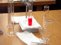 1.はじめに 石川県では,小学校・中学校・高等学校をつなぐ理科教育のあり方をテーマに,毎年11月中旬に理科教育研究大会を開催している。今年度は鹿島郡中能登町を会場に,第43回大会・サブテーマ「自然を見つめ,考える力を育む理科学習」として,11月15日に開催された。近年,生徒の科学的思考力が年々低下する傾向にあることが数多く報告されている。レポート課題を出したり,発展的学習を取り入れたりと工夫しながら,観察・実験等を通した体験活動を多く取り入れ科学的思考力を高めていきたいと考えている。そこで,理科大会で行った授業を機会に,密度を題材とした考える力を育むひとつの授業実践として紹介する。 2.授業に向けて 1年生の11月頃の単元に密度がある。しかし,密度の取り扱いが非常に簡単なものになってしまった。教科書では,公式の紹介と少しばかりの計算演習だけの内容である。これだけでは,本来の密度のおもしろさを味わえないし,何より密度の本質が理解できなく,残念に思っていた。そこで,1年間に1〜2度しか行えない発展的な学習として取り上げることとした。2つの混じり合わない,生徒にとって身近な液体の水と食用油を使用し,その2つを混ぜ合わせると,密度の小さい方が浮く。その境目に,物を浮かせようとすると真っ先に氷が思い浮かぶ。しかし,授業で氷の密度を測定するとなると,溶けが始まって使えない。そんなとき参考になったのが「ものづくりハンドブック2」(参考文献参照)に記載されているロウである。この本には油として灯油が使用されていたが,生徒には食用油の方が身近であると考え,食用油・水・ロウで実験した。実際に実験してみると,ロウが食用油に浮いてしまった。また,食用油の粘性のすごさにも手こずった。そのため,食用油の使用をあきらめ,生徒の生活にそれほどかけ離れた物ではないので,本にあるとおり灯油を使用することにした。 食用油だと薄い黄色がついているので,水との区別がつきやすいが,水と灯油になると生徒の中にはどっちがどうなったか区別できない生徒がいると思い,水に食紅で色を付けた。また,ロウの密度を測定するとき水が使えない(水と灯油の混合物中に入れなければならないので)ので,液体として生徒への危険性の少ないエタノールを使用した。 ロウの形は,生徒が試験管に入れたとき,どのように入れてもきっちり境目でロウの中心を通るように浮く状態にならなければわかりにくい。その形はどんな物がよいかと,いろいろな太さのろうそくをいろいろな長さに切って浮かべてみた。傾いて浮くような物,直径30mmの試験管内でガラス壁に引っ掛かるような物ではいけない。色々調べてみると,10号の太さのろうそくを2cmに切ったものが最も良いことが分かった。また,ロウと一口に言っても和ろうそくもあり西洋ろうそくもある。和ろうそくの方がうまくいきそうだが,切ってみるとろうそく全体にひびが入り,きれいな2cmのろうそくにはならない。そこで,西洋ろうそくを使用することにした。 それぞれの密度を測定すると,水は0.98,ロウは0.85,灯油は0.77位になる。このデーターだと,生徒は水と灯油でどうなるか,水と灯油の混合物にロウを入れたらどうなるかの予想は,比較的簡単にできると思った。しかし,理科大会授業研究会の10日ほど前,再実験をしてみると,ロウの密度が0.95や,ひどいのは1.00などという物が出てきた。それでも,水と灯油の境目に来る現象は変わらず起こる。だから,密度測定に問題があると思った。自分なりに,仮説を色々立て実験してみた。「エタノールがロウに染み込む」(→何度も測定し続けると0.8台になるはず),「ろうそくを切っているから,芯の部分にエタノールが染み込んでいく」(→染み込んでしまえば0.8台になるはず),「ろうそく自体が,火をつける部分と下の部分とで密度がちがう」(→1本を切って密度を測定すれば違いが分かる)など,やってみたが,どれも当たらず,0.9台のロウがたくさん出来てしまった。しかし,それらの中から,なぜかわからないが,0.8台の物が数個出てくる。それらを集めて8個(8班分)にし,本番の授業用に準備した。今現在,なぜこれほどロウの密度がばらつくのか分かっていない。秤量0.1gの電子てんびんで,3.7g〜4.0gのロウをはかり,メスシリンダーを目分量で0.1ml刻みで読む。0.1ml違えば密度は0.02違ってくるので,質量測定時にぎりぎり0.1g下の値を示し,メスシリンダーの目分量を間違いなく正確に読んで初めて求められる量なのかもしれない。 3.授業の実際 11月15日に理科大会で授業を行った時の指導案を以下に示す。第1学年 理科学習指導案 授業者 合田 正則