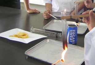 1.はじめに 携帯電話や夜遅くまで街中で出歩いている若者たちの生活の様子は,児童・生徒を持つ親の生活の実態とも合い重なり,生徒たちの食事や睡眠の生活リズムを中心とした生活習慣の乱れは,大きな社会的課題となってきている。また,就学前や小学校で積極的に取り組んできているむし歯なども含めた生活習慣病などについては,中学校ではなかなか指導する機会が持ちにくいのが現状である。保健体育に生活習慣は授業で実施されているが,日々の生活を見つめるためにも,中学校で学級活動における生活習慣に関する授業はとても大切であると考える。そこで,自分の生活を分析し,課題を見つけ,健康的な生活を送るために必要なことは何かといったことを学習していくことについて,理科の視点つまり,科学的なものの考え方や理科の知識をうまく活用すること,つまり,横断的な活用によって,より健康的な生活を送るための実践力を育てることができるのではないかと考えた。なかでも,朝食を食べることの大切さと熱エネルギー(熱量)の関係,むし歯を作らないための歯磨きの意識づくりについて理科関連で授業づくりを行ってみた。 2.実践内容 (1) 「朝ごはんを食べないとどうして頑張る力が出ないのかな?」朝ごはんを食べてこない児童・生徒が全国平均2割いるという実態の中で,家庭では「親自身が食べないから作らない。作ってもどうせ食べないので,作らなくなった」といった家庭もだんだん増加している。 また,食物を食べて生きるということは,食物によって,体を作ること以外に,体温という熱を発生させたり,体を動かしたりするためのエネルギーを得たりすることである。それゆえ,毎日の生活ではきちんと3食摂ることの大切さ,栄養のバランス,適度な運動を正しく理解し,実際に実践できるようになる必要がある。実際に実験をして,体験を通して得られた情報をこれからの生活に活かすために,生活習慣の見直しや,不健康な食生活の様子を知ることで,より深い食生活の理解を図ることをねらいとしている。