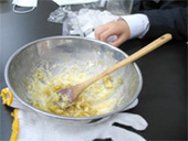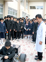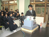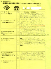 実験後にグループ内で課題,改善点を話し合わせ,次時の活動の参考とさせる。また,実験に対する科学的な視点での考察,技能としての改善点だけでなく,「総合的な学習の時間」の視点から,実用化していくためにはどんな点を改善していけばよいのか,実社会の中で生かせることはないのかといった社会的な視点にたった(現実を見つめた)考察をさせていく。 |