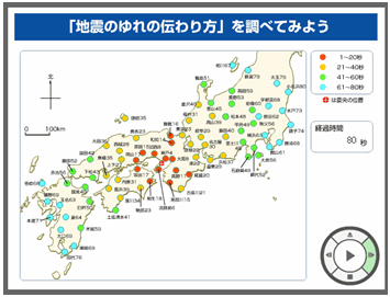地震による諸現象は再現することが困難な場合が多いので,インターネットを用いて過去の地震を視覚的に認識し,地震についての興味関心を高めるとともに理解を深める事が出来る。 |