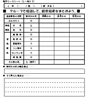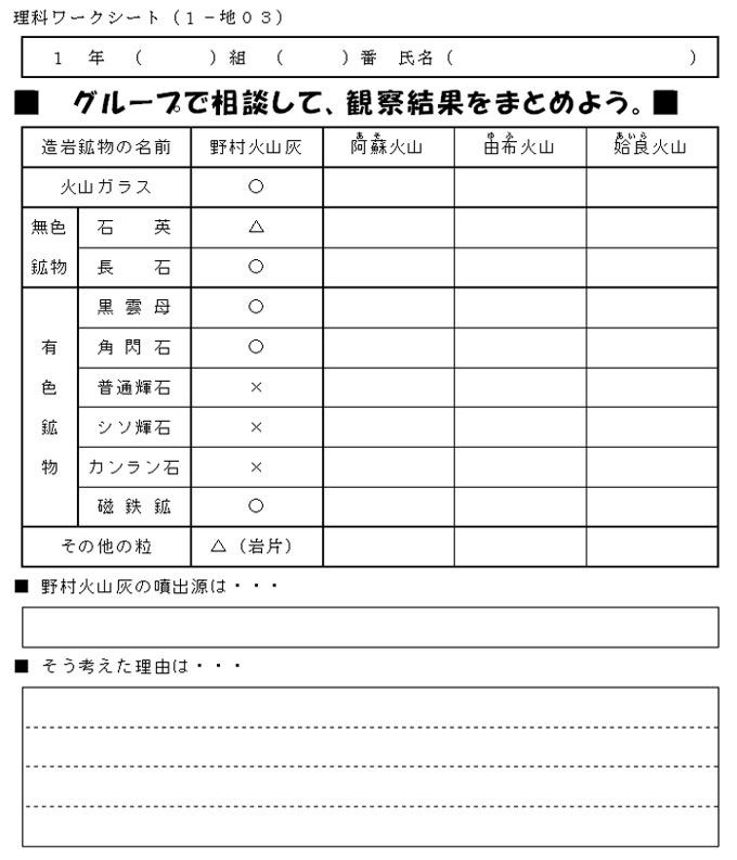 また,造岩鉱物はマグマの物理化学的条件を反映した地下の生き証人である。その種類や量比を調べることによって,ある程度マグマの違いを推定することができる。火山灰は,簡単な処理によって造岩鉱物をほぼ自形のまま観察できる優れた教材である。そのため,造岩鉱物の観察結果からのマグマの違いを推定することができるので,火山灰を教材として火山の学習に位置付けることは適切と考える。