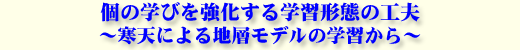 地層の学習では,自然の路頭を実際に観察することが堆積岩や地層の広がりなどを学習する上で大変重要な方法だと考えるが,身近に観察に最適な路頭がない場合には,学校事情や教育課程などの諸問題のため現実的には難しい。そこで地層の学習を行うにあたって,たびたび紹介されることもある寒天による地層の不整合モデルを使用し,柱状図の作成などから,地層の広がりなどを学習する計画をたてた。またこの学習を通して,『個の学びを強化する学習形態の工夫』について考えてみた。本文の実践については,以前に実施したものを,再検討したものである。
