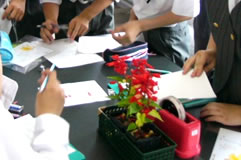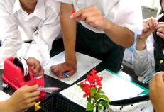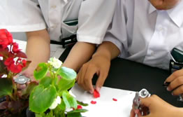 はじめてトレニアという花を調べて,がくの形がほかの花のがくと違うことを発見した。 |